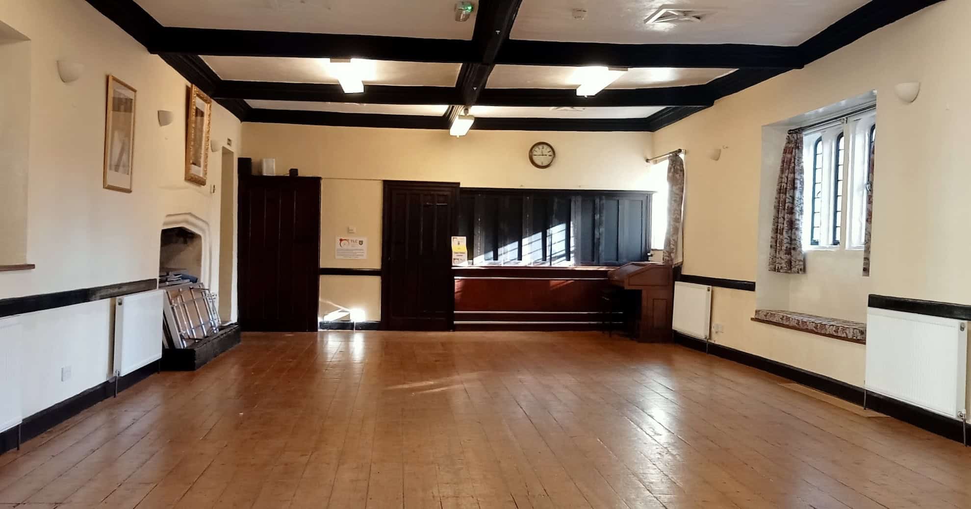 The beautiful beamed hall can accommodate approximately 60 seated or 120 standing. The Upper Hall provides a unique, historic setting for a variety of formal or special occasions. Use of kitchen and central heating controlled by Hive is included. Ramps provided for disabled access.